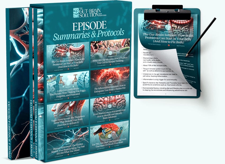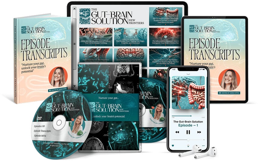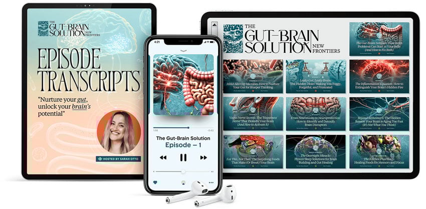The Gut-Brain Solution: New Frontiers Platinum Plan gives you instant, lifetime access to the entire 10-part series uncovering the groundbreaking connection between your gut and brain. Plus, 45 expert interviews, episode transcripts, and $2,400+ worth of additional bonus resources to set you up for success.