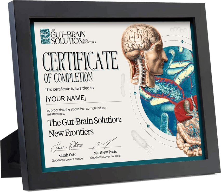 Once you finish watching the Gut-Brain Solution: New Frontiers program and mark all lectures as complete, you’ll be awarded a Certificate of Completion for all your hard work. Download it, print it, display it in your office, or post it on social media — it’s entirely up to you.