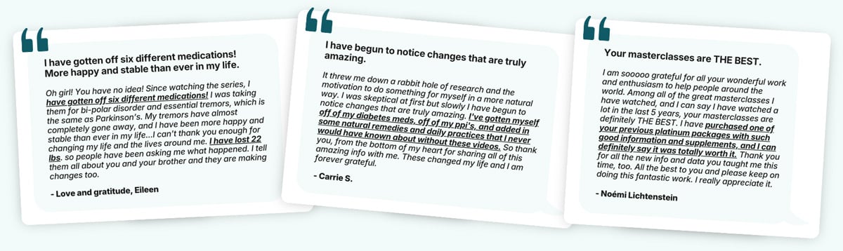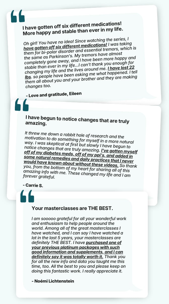 We truly believe that by teaching others the pathway to health, we have the power to change lives. By owning the series and joining our community through our special bonuses, you empower us to create more content in the future. Our vision is to get this message out as far and wide as possible. Together with your help, we can impact generations to come by raising awareness and giving people the tools they need to restore their health.