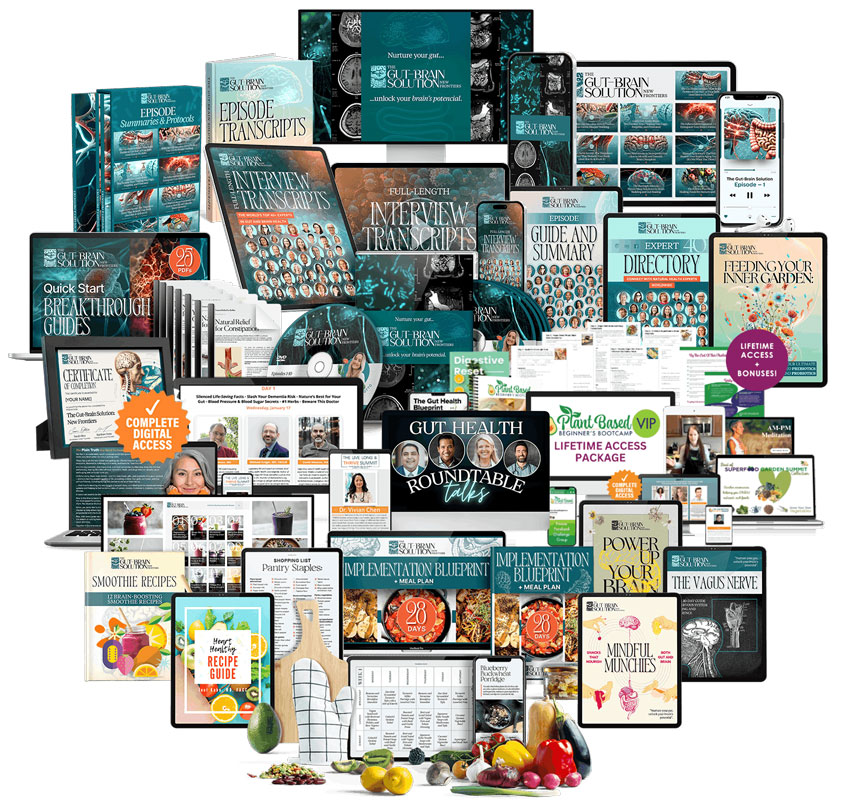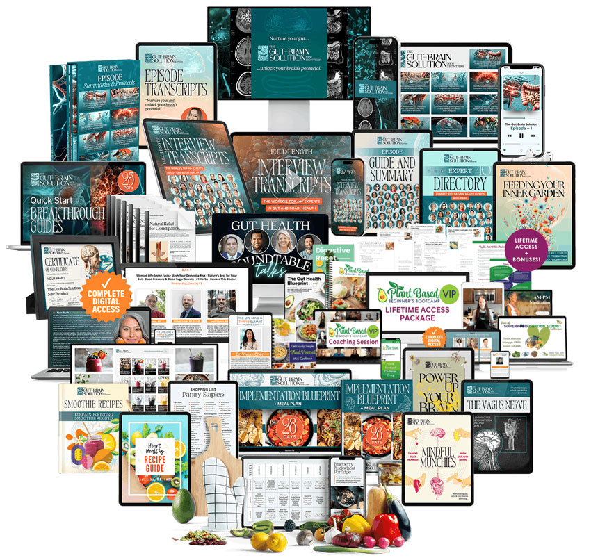 Watch every expert’s full interview and learn everything they had to share. You’ll get over 45 hours of insightful footage from the physicians, nutritionists, neuroscientists, and world-leading experts inside The Gut-Brain Solution: New Frontiers. Hear the powerful advice, tips, and practices that didn’t make it into the 10-episode docuseries.