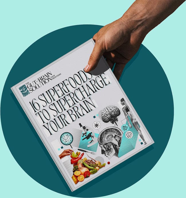 First, in the FREE 16 Superfoods to Supercharge Your Brain eBook, you’ll discover the top 16 science-backed superfoods to nourish your mind, protect your neurons, and support your gut-brain connection.